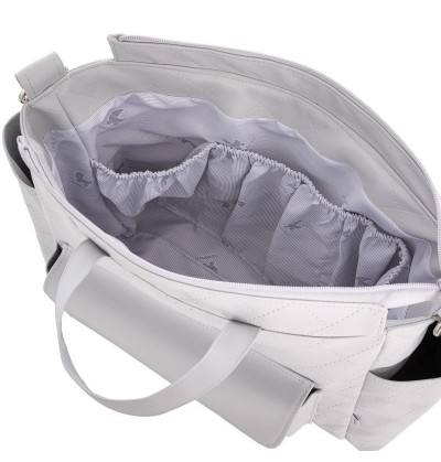 Il suo sistema di manici corti lo rende utile come come borsa a tracolla o anche per il passeggino, poiché il manico lungo è dotato di clip per appenderlo al passeggino.