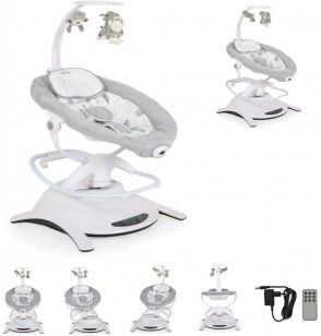 Inoltre, la Scala può essere utilizzata anche come sdraietta, poiché può essere fissata in una posizione senza oscillare. La scatola di vibrazione con 3 livelli e la barra dei giochi con 3 peluche, che possono essere fissati in 3 posizioni diverse, terranno il tuo bambino intrattenuto e felice. Ci sono inoltre molti brani tra cui scegliere per creare l'atmosfera perfetta.