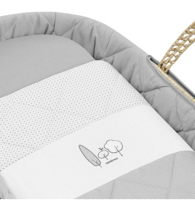 È composta da una base in vimini, materasso, coperta, cuscino e rivestimento, da abbinare all'arredamento della stanza.