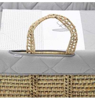 La culla Cesta in palma imbottita è indicata per i primi mesi di vita del neonato e grazie ai suoi manici è facilmente trasportabile.