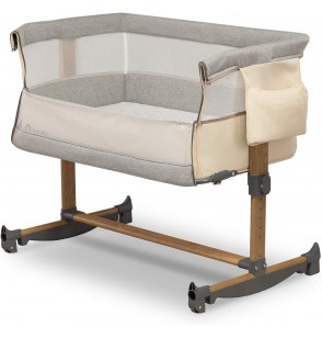 Lettino co-sleeping, lettino indipendente e culla. Grazie alla sponda mobile, può essere usato come letto co-sleeping e, quando la sponda è sollevata, come lettino indipendente. Grazie alle estremità delle gambe girevoli, il lettino può essere trasformato in una culla.