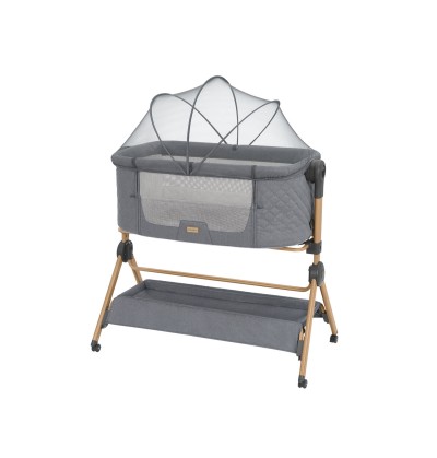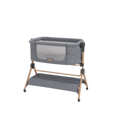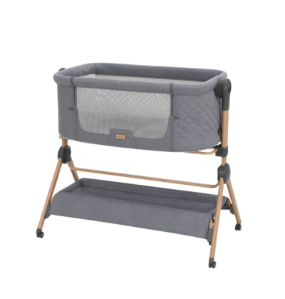 Culla da affiancare al letto – Adatta dalla nascita fino a 6 mesi (fino a 9 kg), con altezza regolabile, posizione anti-reflusso, pannelli in rete per il passaggio dell'aria, parte anteriore abbassabile e cinghia per fissare la culla al letto dei genitori per un riposo notturno tranquillo.