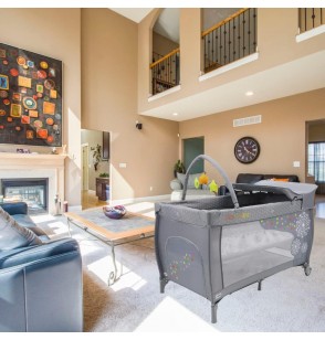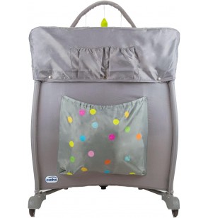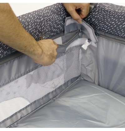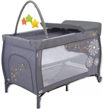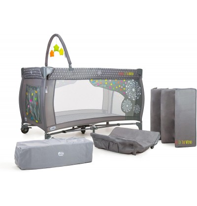 È perfetto per ogni occasione, con: una base a doppia altezza con cerniera, un arco gioco, una borsa per il trasporto, un fasciatoio, angoli protetti, una borsa per i giocattoli, una gattaiola e un materasso in schiuma rinforzata.