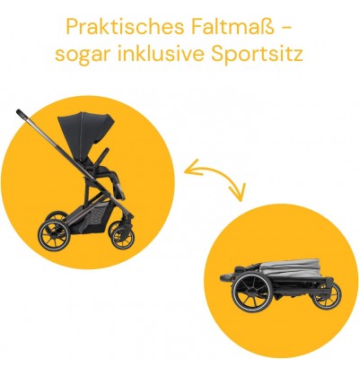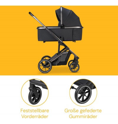 L'elegante carrozzina e passeggino combinato vanta numerose funzioni pratiche, una lunga durata e molto comfort.