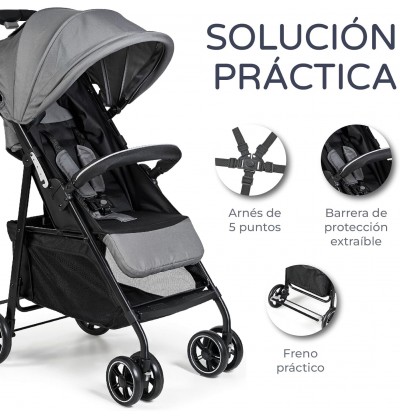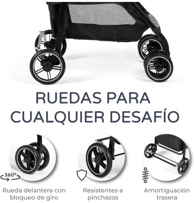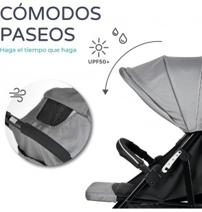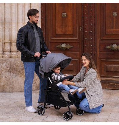Il passeggino Innovaciones STREET leggero e compatto con ruote di diametro 19 cm, la cappota è XXL con protezione solare PUV50+ e un materiale idrofobico.