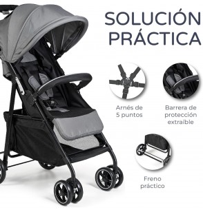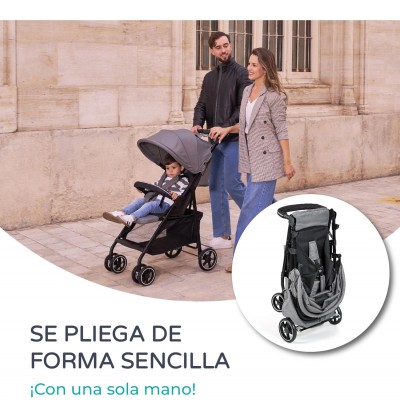 Il passeggino street può essere piegato molto facilmente con 1 mano poiché è dotato di CHIUSURA assistita e si piega autonomamente. È perfetto da piegare con il tuo bambino in braccio. Le sue misure sono 104 x 65 x 51 cm aperto e 57 x 51 x 60 cm piegato, facilitando sia lo stoccaggio che il trasporto