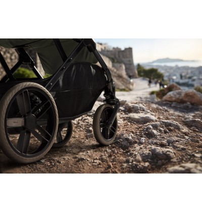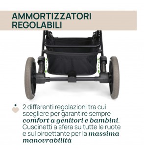 Grandi ruote in gomma e sospensioni regolabili per una guida agile e fluida su tutti i terreni.
