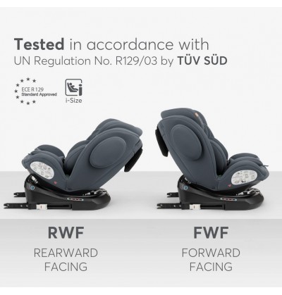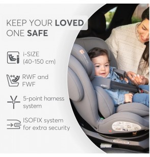 Realizzato con materiali di alta qualità, questo seggiolino auto soddisfa le rigorose normative i-SIZE, garantendo un ambiente sicuro e accogliente per il tuo bambino da 40 a 150 cm.