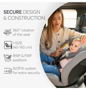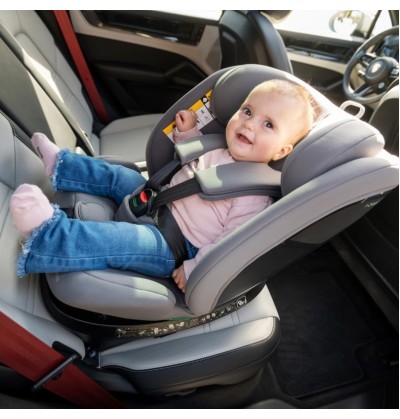 Massima praticità: la rotazione a 360 gradi del seggiolino consente un facile ingresso e uscita, mentre le 5 posizioni di reclinazione in entrambi gli orientamenti offrono un comfort ottimale in ogni fase.