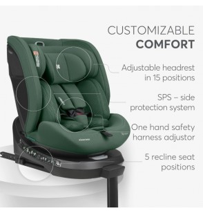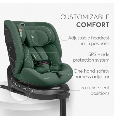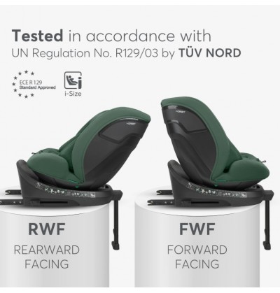 Kikkaboo Seggiolino Auto i - Size Girevole di 360° da 0 a 36 Kg (40-150cm) ARMY GREEN
